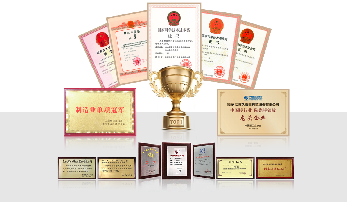 公司先后獲得四次國家科技進(jìn)步獎、一次國家技術(shù)發(fā)明獎公司陶瓷濾膜產(chǎn)品及成套裝備
